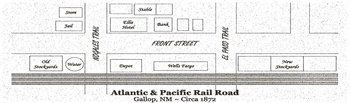 The lone horseman rode into Gallop from the south. He was on the trail at sunup and his sorrel filly had tired an hour ago. Each plod of her hoofs seemed slower than the one before. Her head was low and the rider gave her the reins. The Nogales Trail crossed the tracks of the Atlantic & Pacific Rail Road between the depot and the water tower, which was the oldest structure in the fledgling settlement.